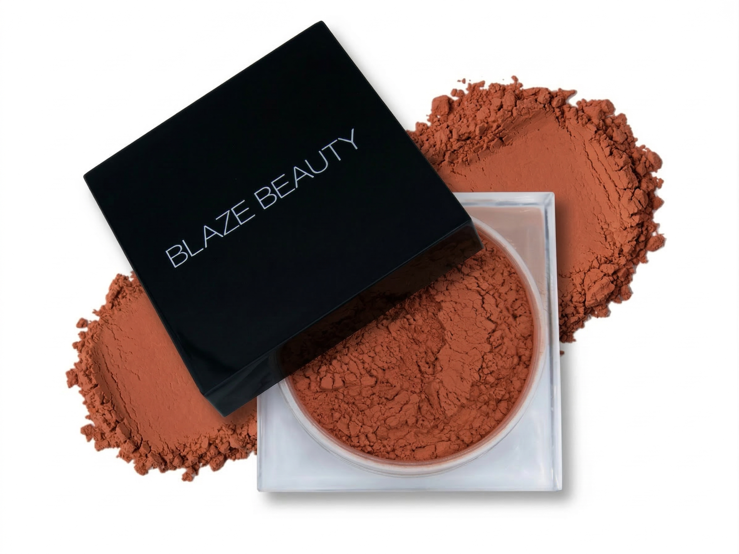 • Packaging: Clear jar with a sifter and black twist cap, paired with a circle powder puff